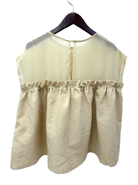 【中古】dolce ドルチェ シンプル シースルー 切替 フリル 半袖 カットソー M ベージュ レディース 【ベクトル 古着】 190603