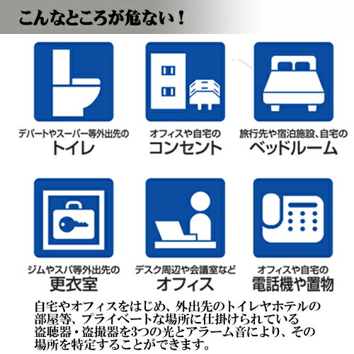 《注意点》 ・盗聴器の機種により、電波の出力が非常に弱いものがあり、本器を5cmぐらいまで 接近させないと反応しない場合がございます。