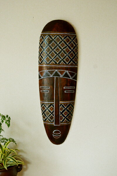 ★キャッシュレス5%還元対象★壁飾り 壁面装飾 ウォールデコ オブジェ インテリア小物 アジアン雑貨 バリ ♪ほほ笑み顔のバティックマスク(ワイドタイプA)♪ おしゃれ エスニック リゾート アジアンインテリア インテリア雑貨 デザイン雑貨