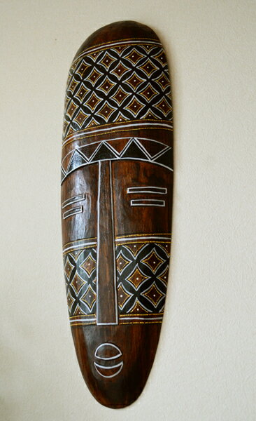 ⇒壁飾り・ルームプレート 一覧へ ほほ笑み顔のバティックマスク(ワイドタイプA) インドネシアの伝統工芸のバティック柄の微笑み顔のバティックマスク☆